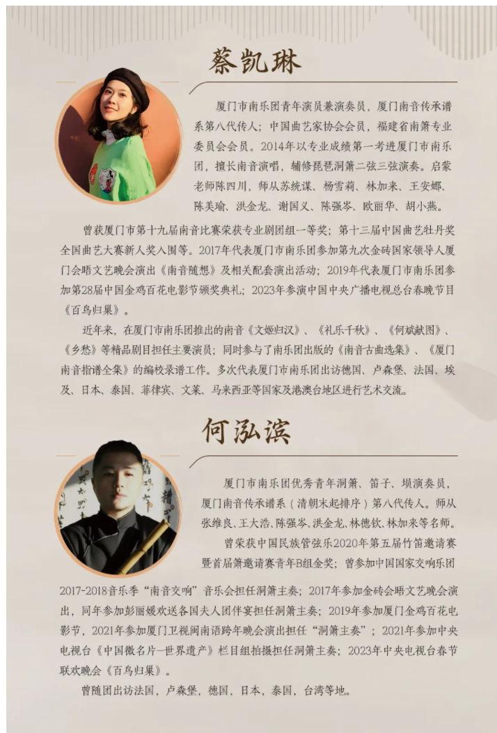 后来,林宸考入福州大学,并在校管弦乐团担任键盘声部长;硕士阶段,她远赴欧洲求学;博士期间,她将研究方向锁定在现代钢琴艺术与南音的融合。2024年,林宸以厦门华厦学院音乐教师的身份投入到音乐教育与文化传播中。一心想把南音这项非遗与钢琴结合,让世界听见中国古乐的新声音。