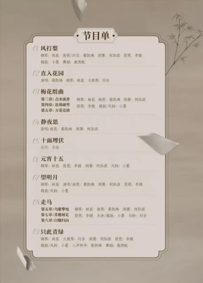 这场音乐会不是钢琴的“独角戏”。林宸将邀请多位好友同台,琵琶、洞箫、大提琴、箱鼓、四宝轮番登场!